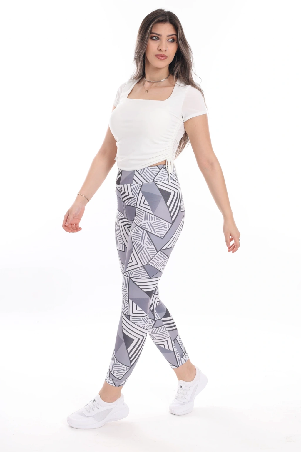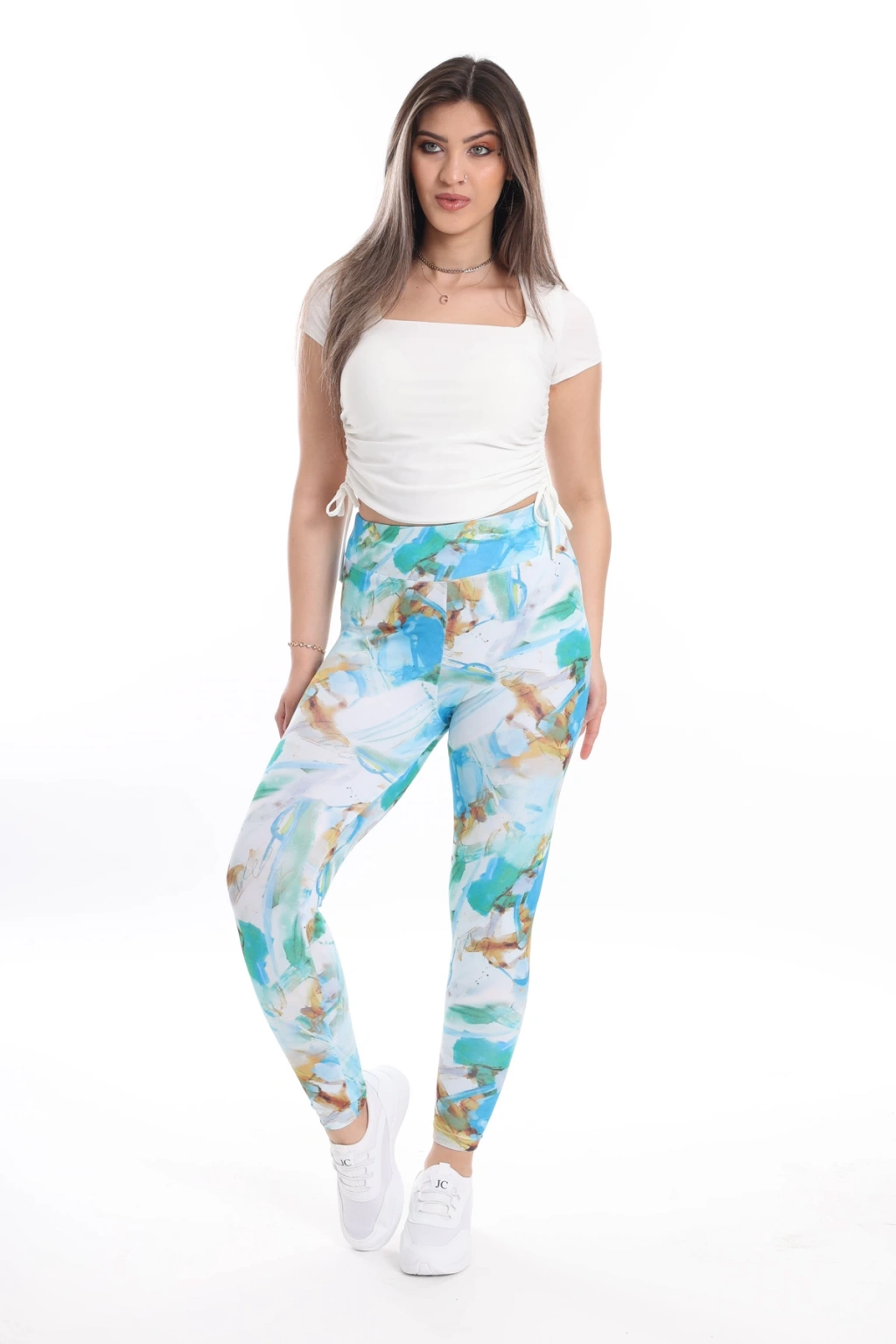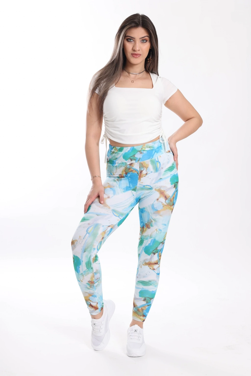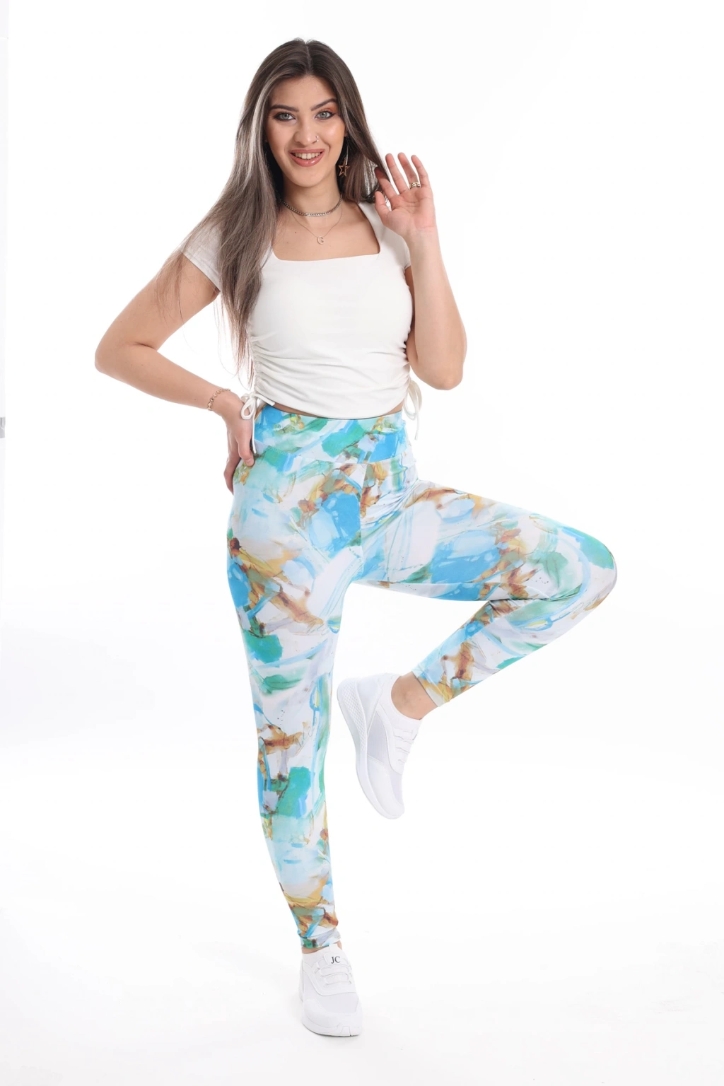 Kadın Beli Lastikli Dijital Baskılı Toparlayıcı Tayt