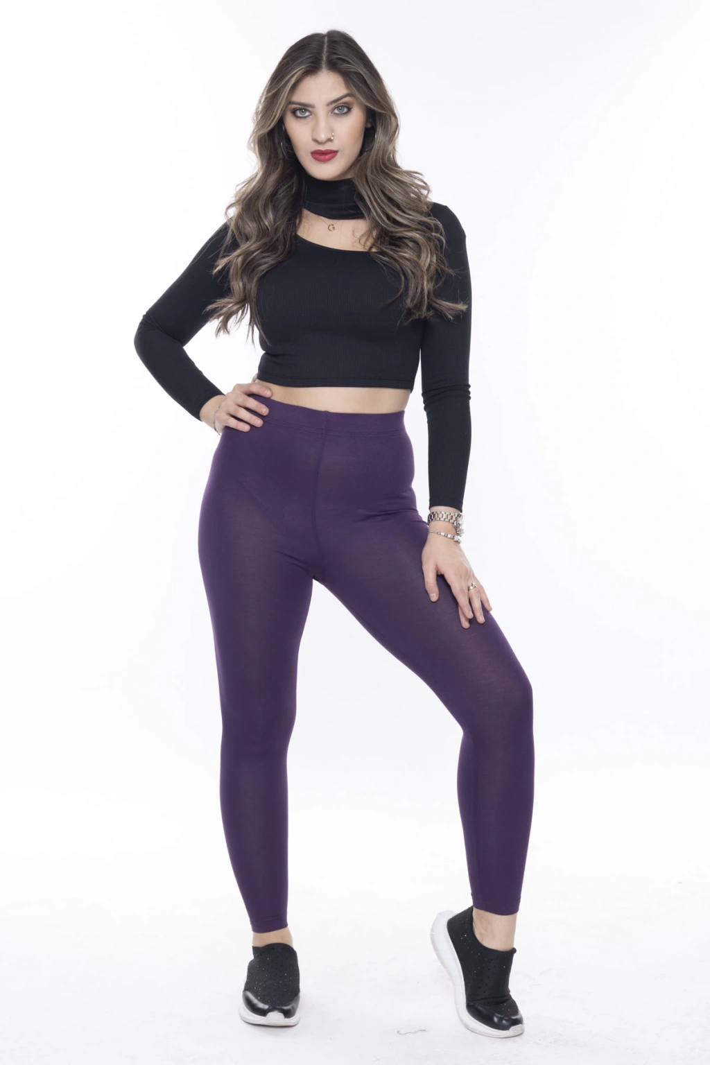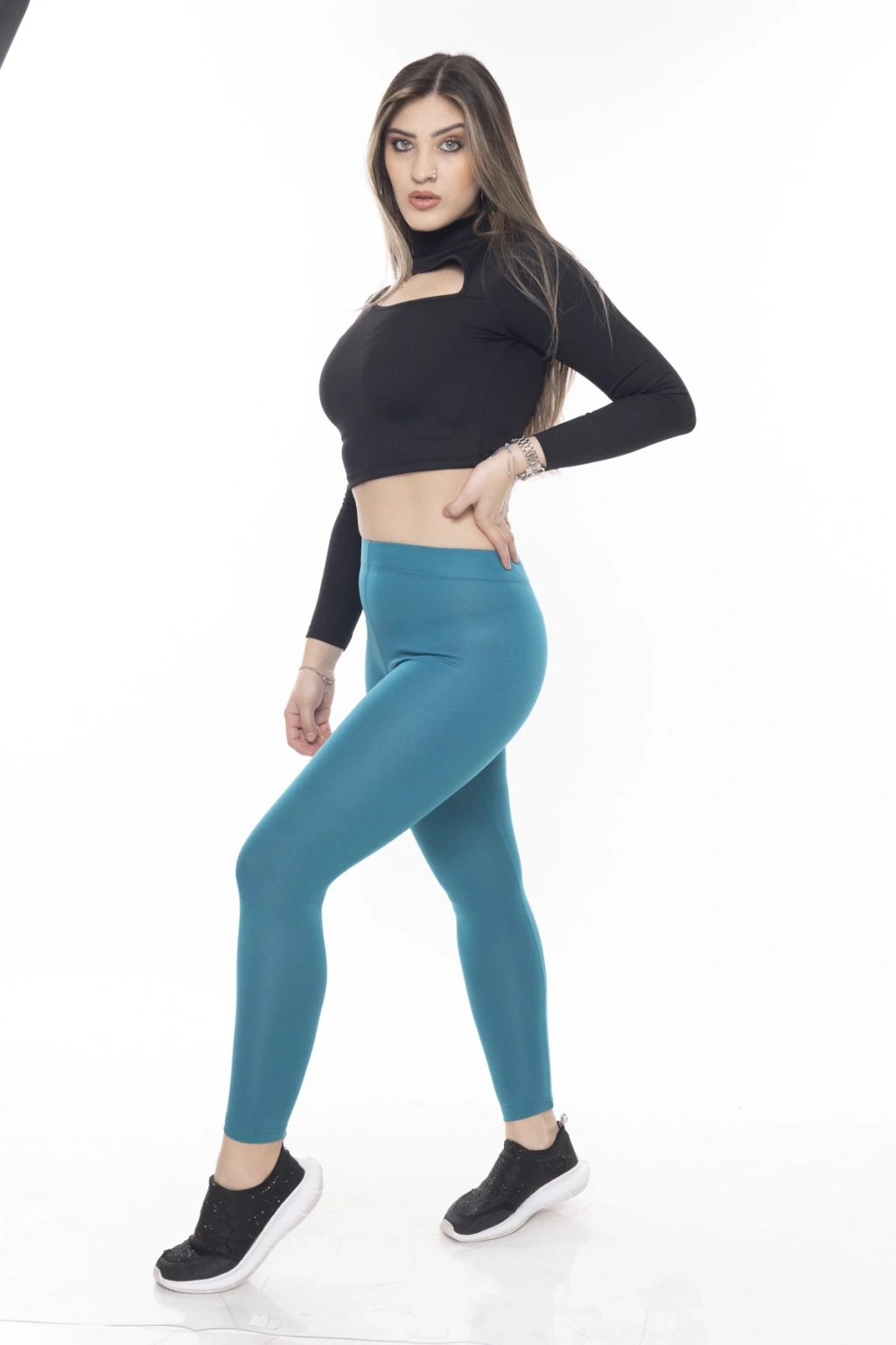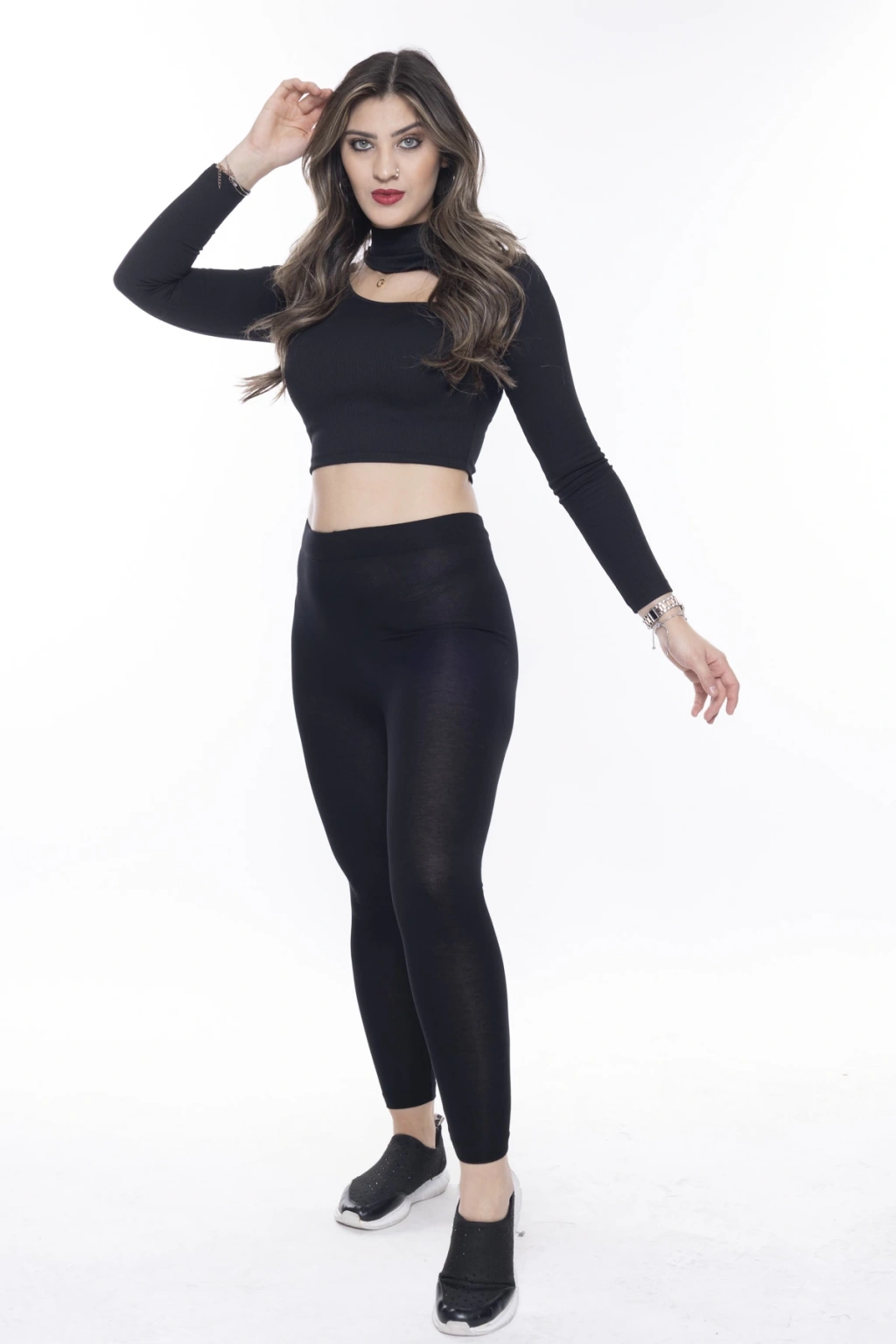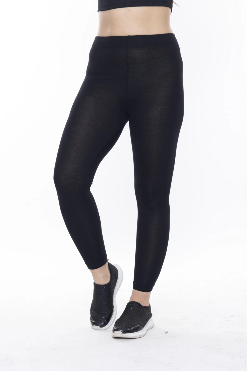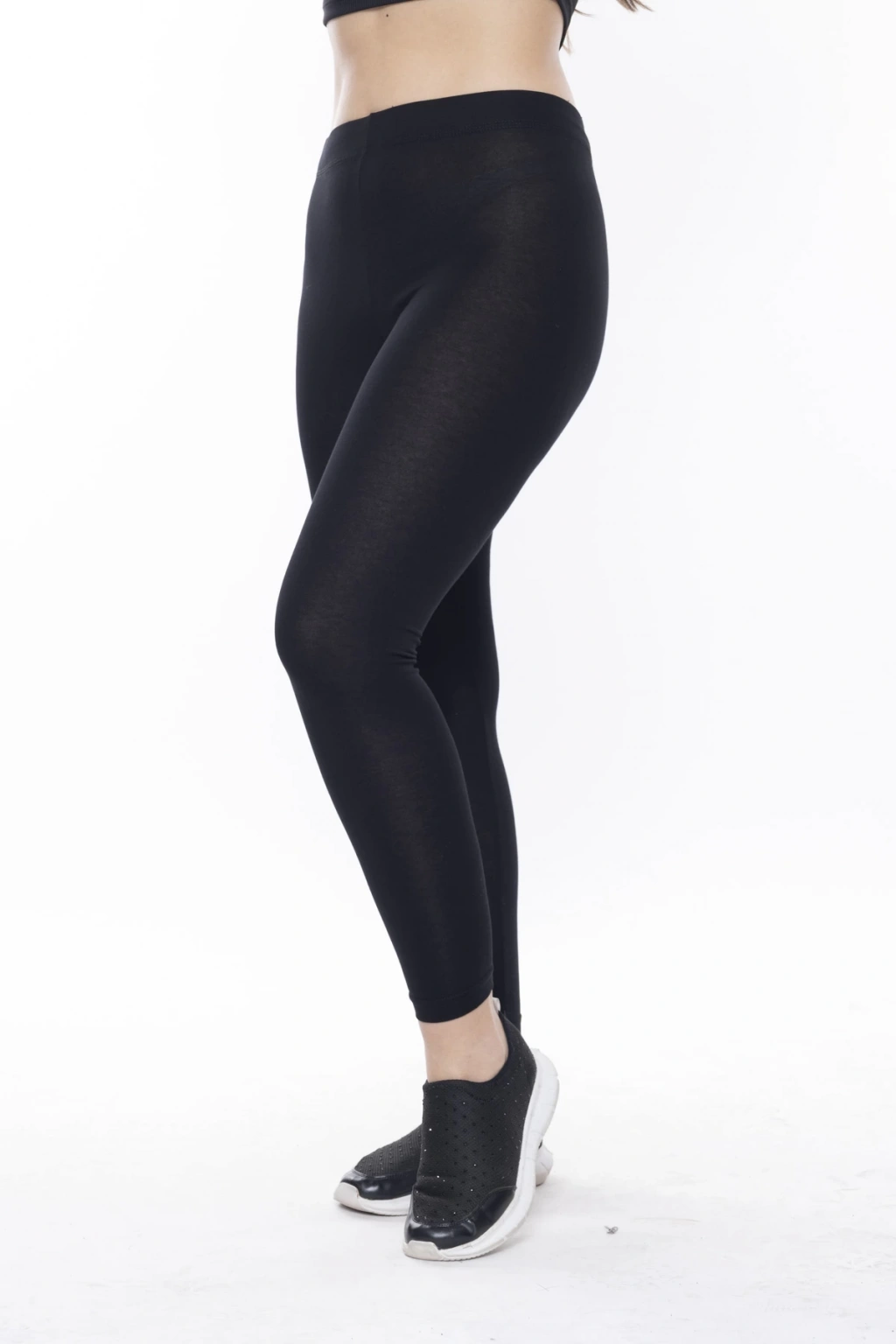 Kadın Siyah Beli Lastikli Paça Taş İşlemeli Toparlayıcı Tayt