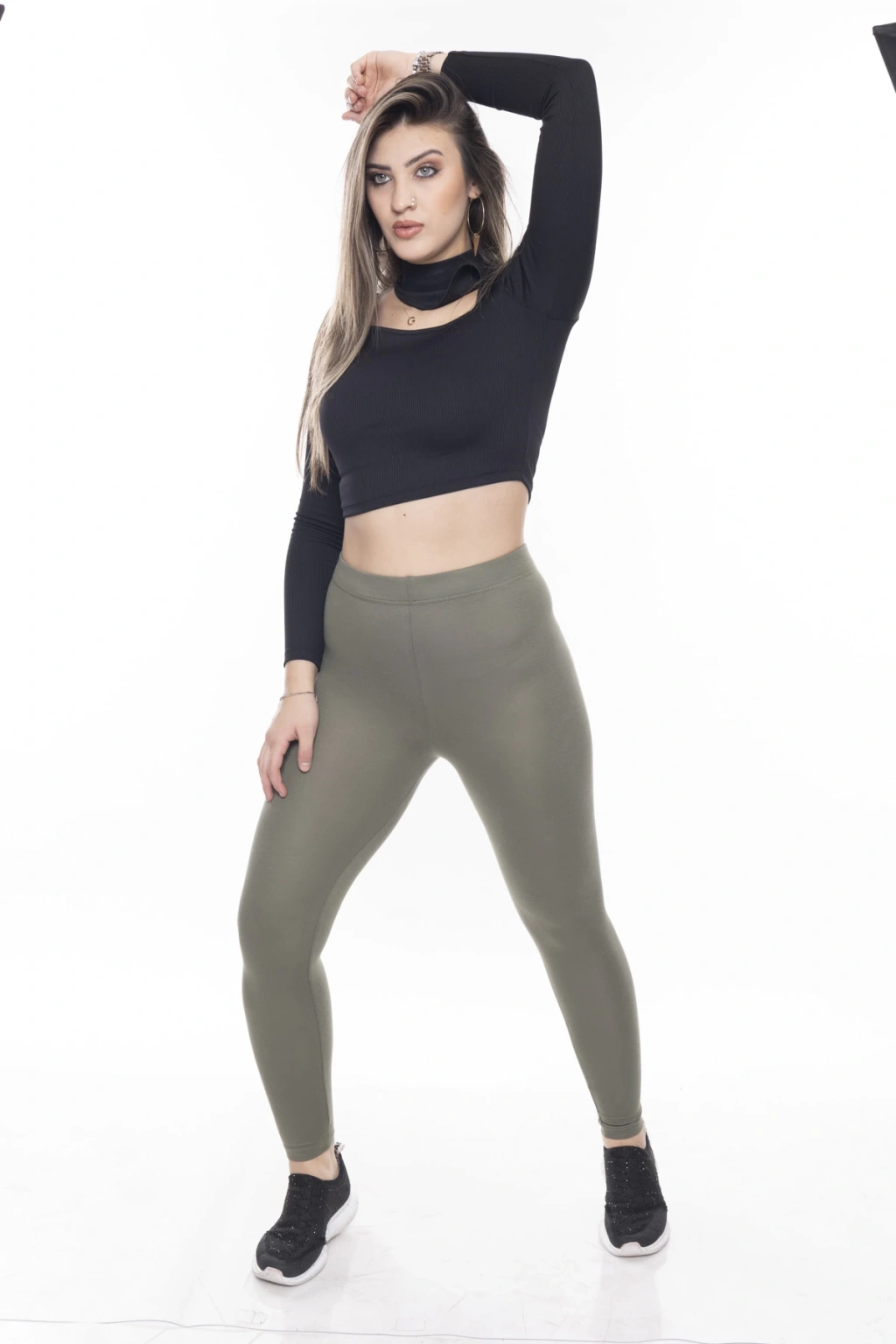 Kadın Siyah Beli Lastikli Kemeri Dizi Şeritli Toparlayıcı Tayt