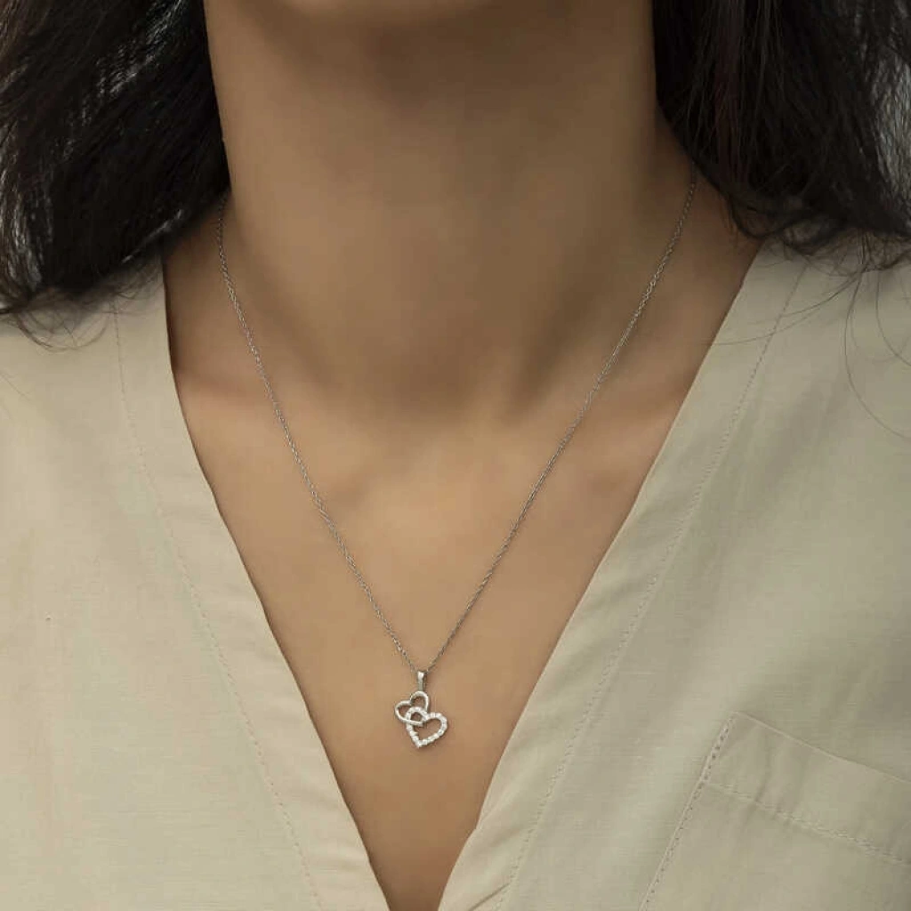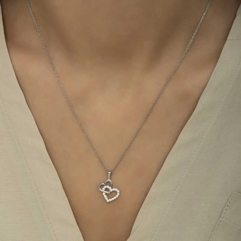 Kalp deseninin bir kısmı taşlı olan bu harika tasarım kalp kolye modeli 925 ayar gümüşten imal edilmiştir. Kalp tasarımlı kolyeler aşkı çağrıştırır. Bu yüzden gümüş kalp kolye güzel bir hediye seçeneği de olabilir. Bu kolye üzerinde zirkon taşlar kullanılmıştır. Gümüşün üzerine oksitlenmesinin gecikmesi ve parlaklığını uzun süre muhafaza etmesi için rodyum kaplama yapılmıştır. Tamamen gümüş olan zincir uzunluğu ortalama 45 cm’dir. Bu bayan kalp kolye modeli diğer gümüş bayan kalp kolye modellerinde olduğu gibi el emeği ile üretilmiştir. Gümüş ve değerli taşlar nedeniyle belirtilen ortalama ürün ağırlığında ± %10 sapma olabilmektedir.