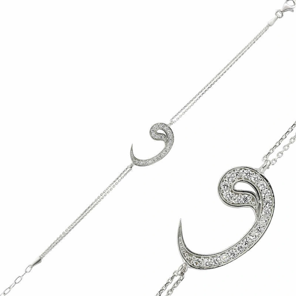 Arapça vav harfinin bulunduğu bu bileklik 925 ayar gümüşten imal edilmiştir. Vav tasavvufta mütevaziliği temsil eder. Şıklığına özen gösteren bayanlar için eşsiz bir bilekliktir. Gümüş bileklik üzerine rodyum kaplama yapılmıştır. Rodyum kaplama yapılan bayan bileklikler parlaklığını uzun süre muhafaza eder, oksitlenmesi gecikir. Bu vav bayan bileklik modeli üzerinde bulunan taşlar zirkondur. Bileklik uzunluğu bilek kalınlığına göre ayarlanabilmesini sağlayan uzatma zinciri vardır. En fazla 21 cm’ye kadar uzayabilir. Bütün bayan bileklik modellerimiz el emeği ile üretilmiştir. Gümüş ve değerli taşlar nedeniyle belirtilen ortalama ürün ağırlığında ± %10 sapma olabilmektedir.