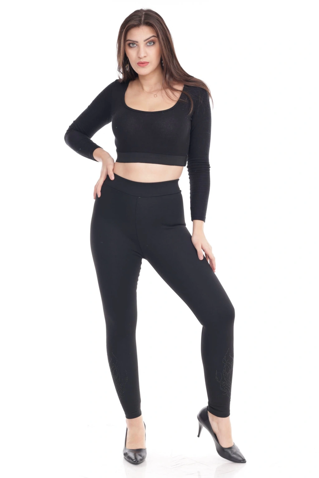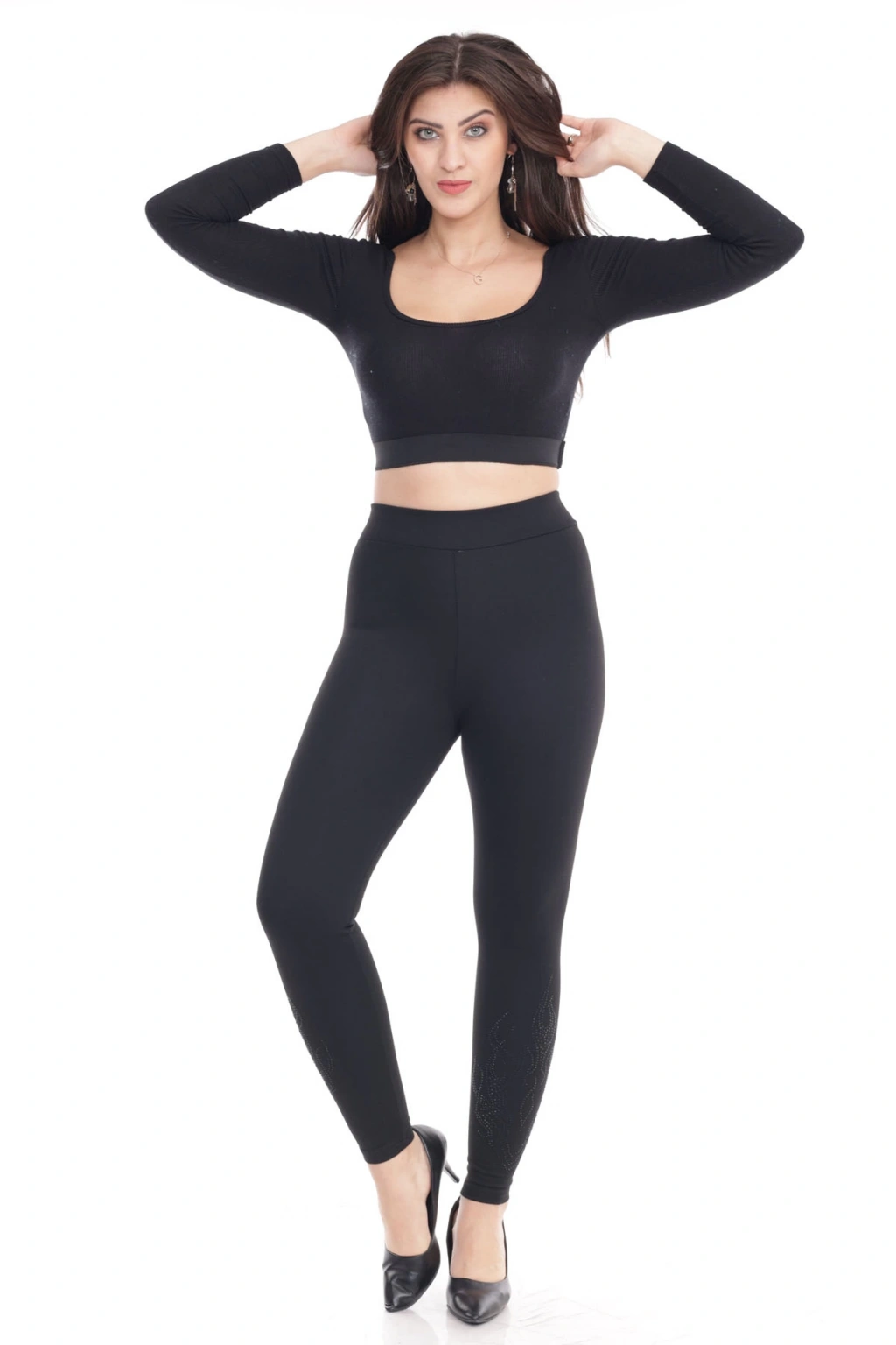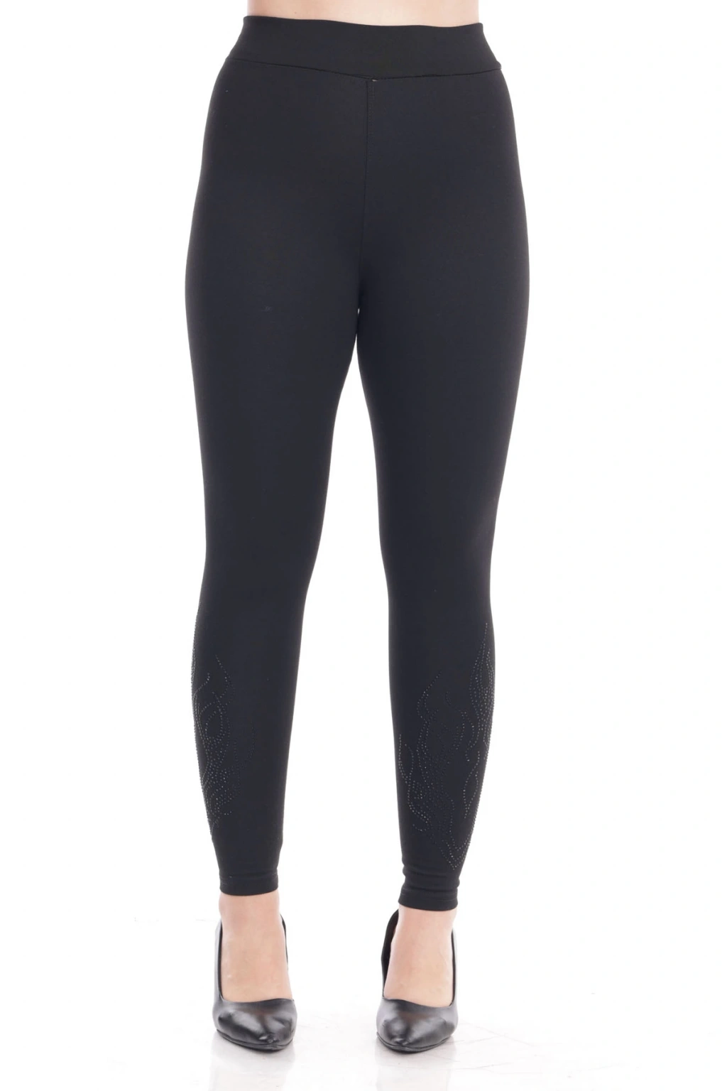Kadın Siyah Beli Lastikli Paça Taş İşlemeli Toparlayıcı Tayt