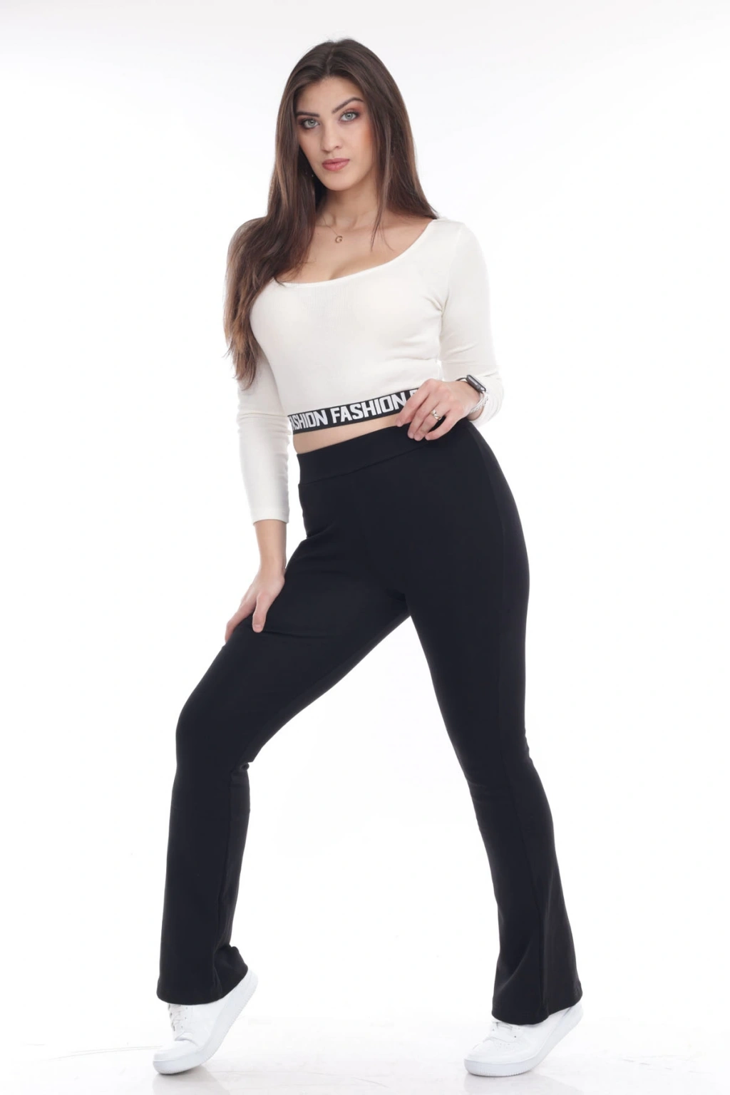 Kadın Siyah Beli Lastikli Toparlayıcı İspanyol Paça Tayt