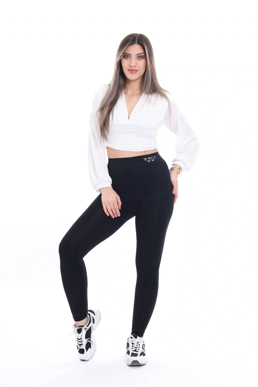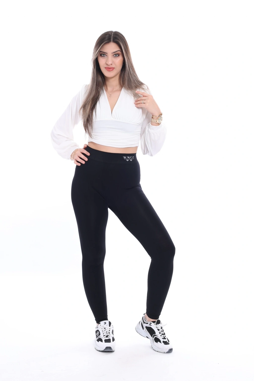 Nodaza'nın özel tasarımı Kadın W işlemeli kemer detaylı toparlayıcı tayt ile şıklığı ve rahatlığı bir arada yaşayın.